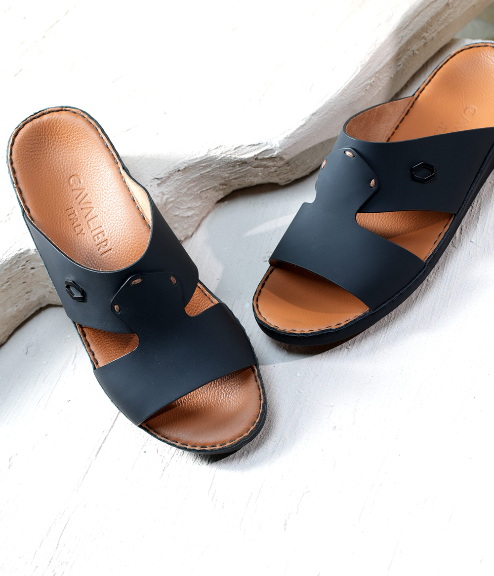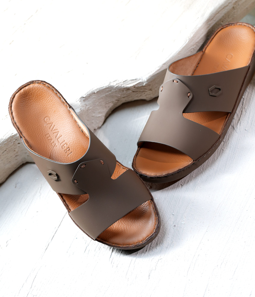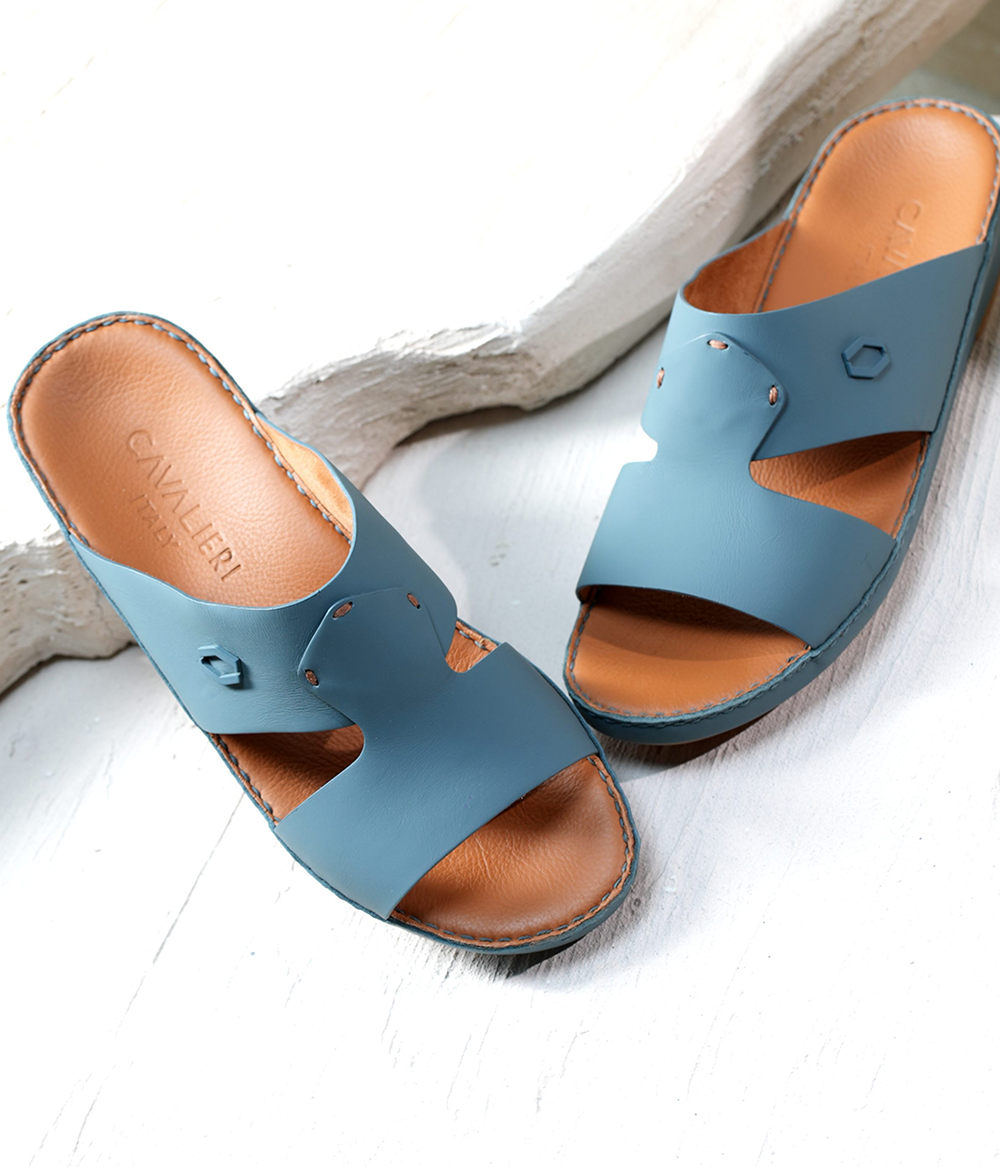 - مصنوعة من جلد العجل الطبيعي المقاوم للماء، ما يمنح النعال متانة عالية ومظهرًا أنيقًا يدوم طويلًا